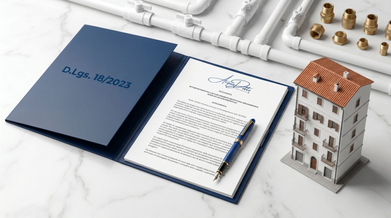 Il D.Lgs. 18/2023 — entrato in vigore il 21 marzo 2023 — ha sostituito il precedente D.Lgs. 31/2001 e ha introdotto una novità fondamentale. Ha stabilito con precisione dove finisce la responsabilità del gestore idrico pubblico e dove inizia quella del proprietario o dell’amministratore.