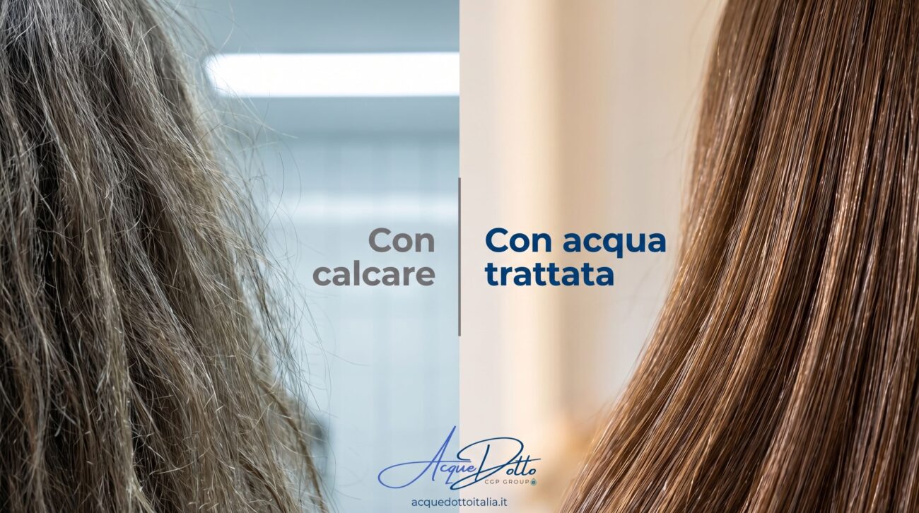 Sì. Con durezza tra 25 e 35 °F, il calcio si deposita sulle squame della cuticola dopo ogni lavaggio: capelli opachi, ruvidi, difficili da pettinare, più fragili. I prodotti per capelli funzionano peggio perché l’acqua dura ne neutralizza una parte. Un addolcitore risolve il problema alla radice — lo stesso che molti parrucchieri della provincia hanno già installato. Approfondisci: Acqua Dura e Capelli